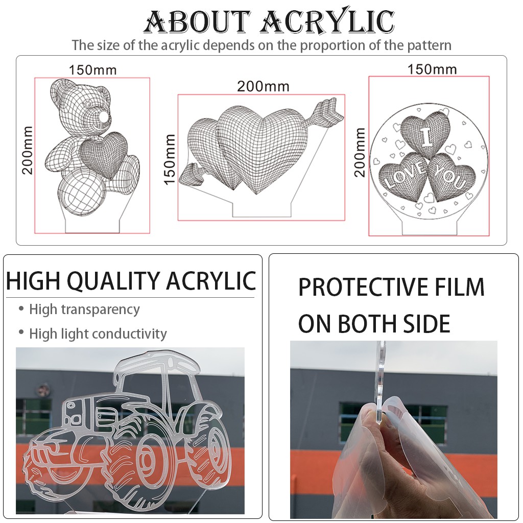 7 Renkler 3d Illusion Akrilik Isik Paneli Icin Led Lamba Tabani Aa Pil Veya Dc 5
