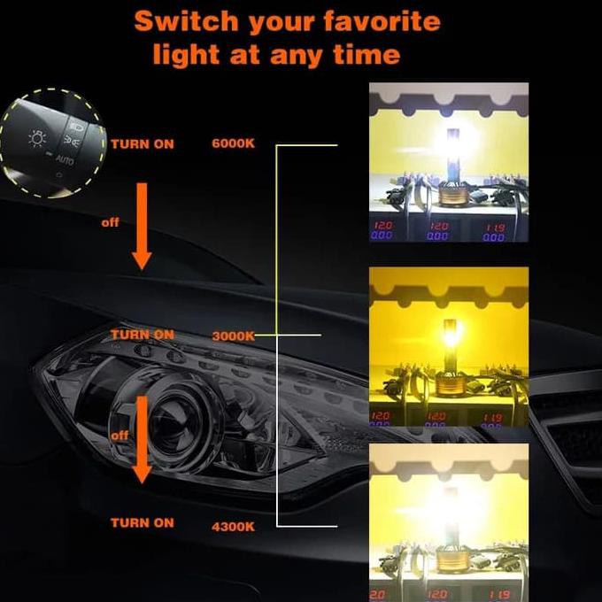 Yeni 3 Renk Degistiren Led Ampul Far Sis Lambasi H1 H3 H4 H7 H8 H9 H11 9005 9006 9012 880 881 3000k Sari 4300k Sicak 6000k Beyaz Auto Led Headlight Led Headlightauto Led Aliexpress