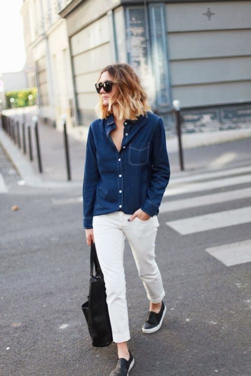 Kombin Fikirleri Lacivert Blazer Beyaz Gomlek Acik Renk Jean Pantolon Beyaz Spor Ayakkabi Gomlek Jean Pantolon