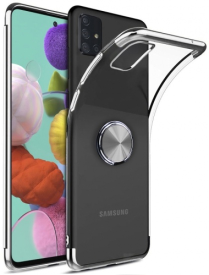 Samsung Galaxy A71 Kilif Renkli Koseli Yuzuklu Standli Lazer Seffaf Esnek Silikon Gumus Standli Kilif