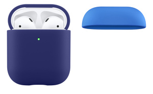 Power Support Silicone Dual Cap Case For Airpods Dark Blue Light Blue Education Apple