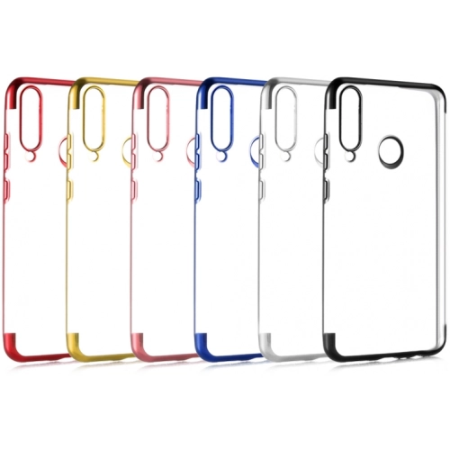 Huawei Y6p Kilif Renkli Lens Korumali Koseli Lazer Seffaf Esnek Silikon Gold Ultra Ince Kiliflar