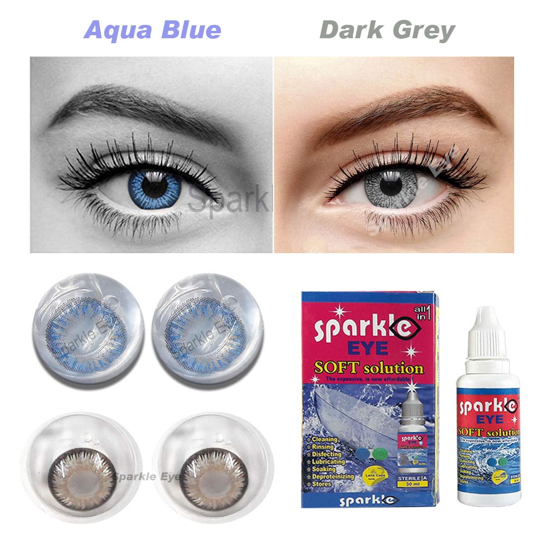 Buy Sparkle Eye Combo Pack 2 Pairs Of Monthly Color Contact Lenses Aqua Blue Dark Grey Zero Power With Free Lens Solution 2 Lens Case Container Kit Online At Low Prices