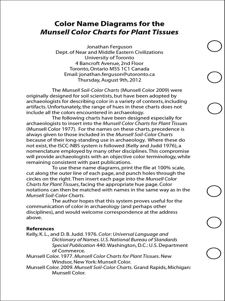 Color Name Diagrams For The Munsell Color Charts For Plant Tissues Art Materials Vision