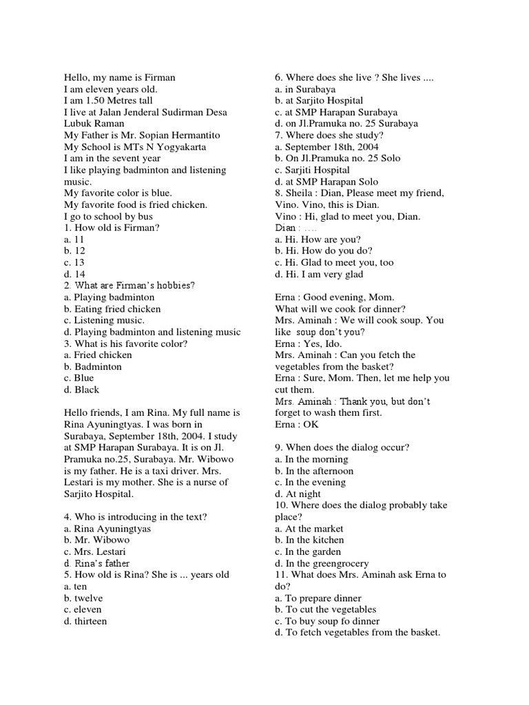 Soal Bahasa Inggris Kelas 7 Foods