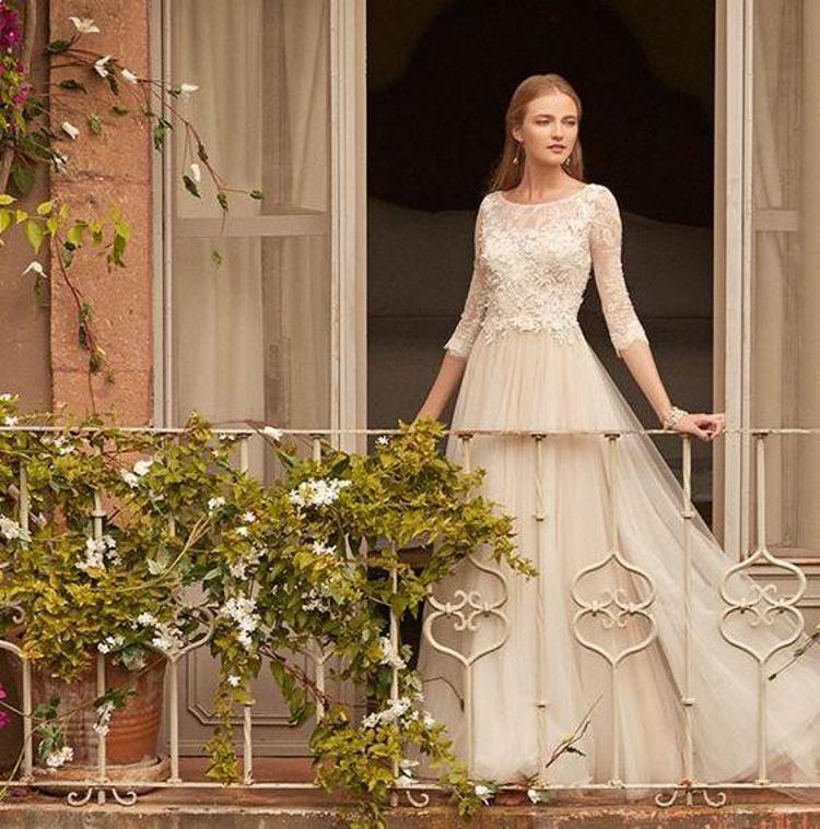 Ekru Gelinlik Modelleri Ekru Cicek Aplikeli Gelinlik