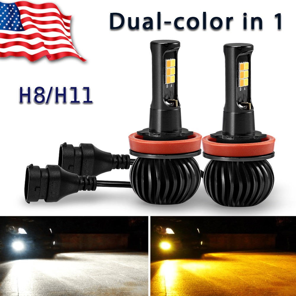 Amazon Com Ai Qiliang H8 H9 H11 Led Headlights Dual Color High Low Beam Bulbs Fog Lamp For Car 2 Color Temperature 3300k Warm Yellow And 6000k White Light Waterproof Ip68 3 Years Warranty 2 Pack