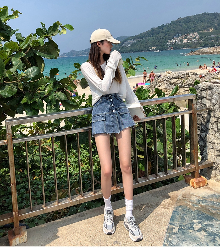 2018 Yeni Bahar Ve Yaz Moda Kadin Iki Renk Vizon Kurk Etek Denim Jeans Genis Bacak