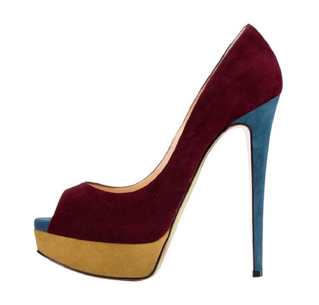 Eyrina Suet Siyah Bordo Iki Renkli Stiletto Ayakkabi