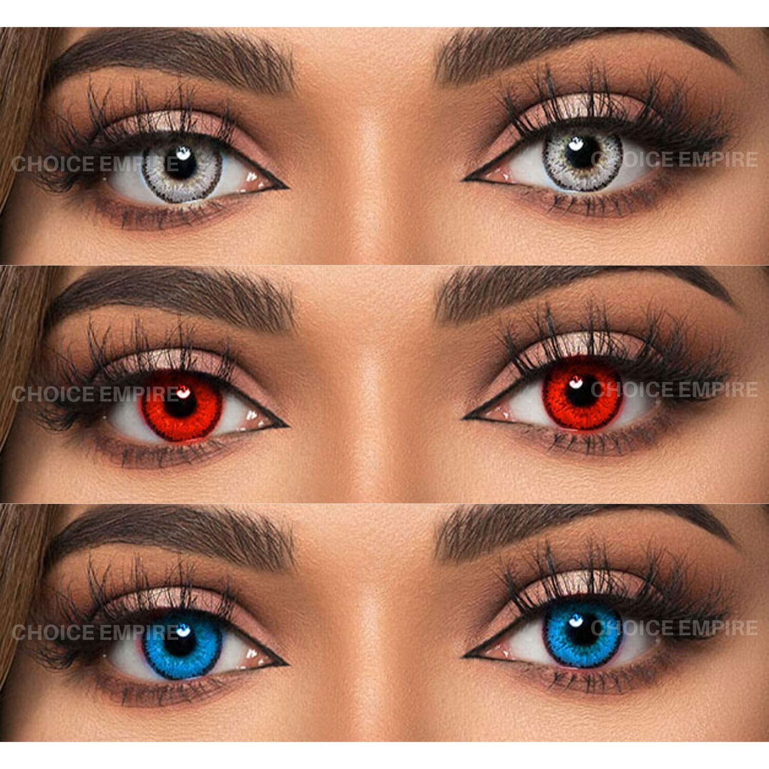 Buy Choice Empire 3 Pair Monthly Color Contact Lenses 0 Power With Lens Case Grey Red Sky Blue Online At Low Prices In India Amazon In