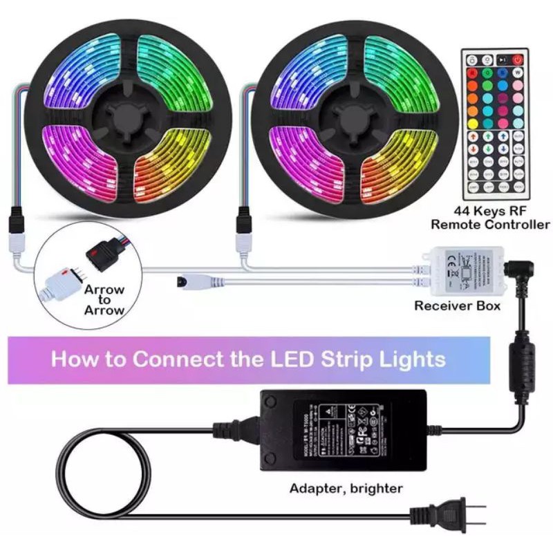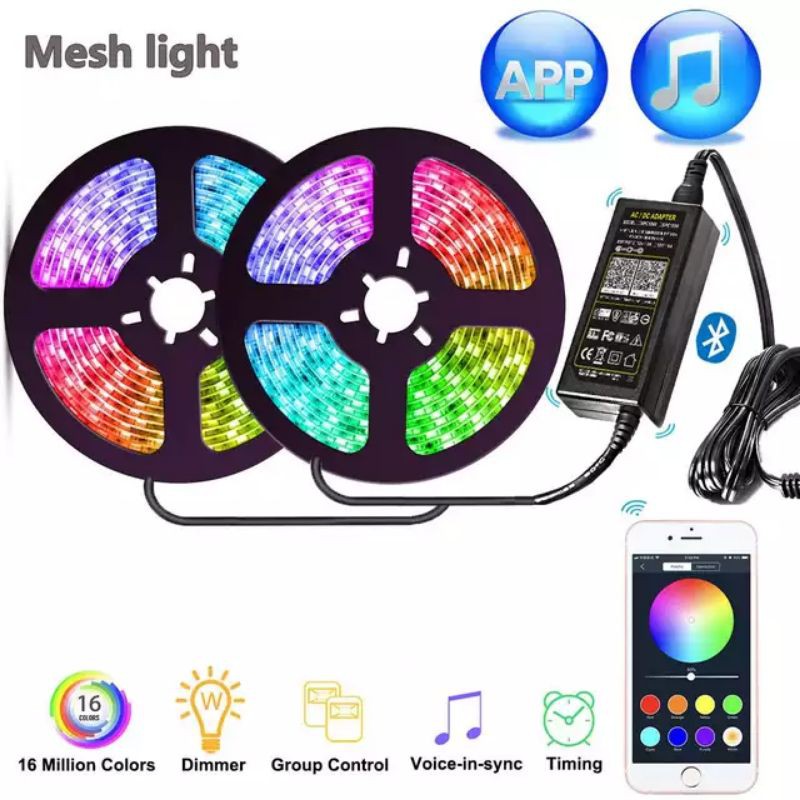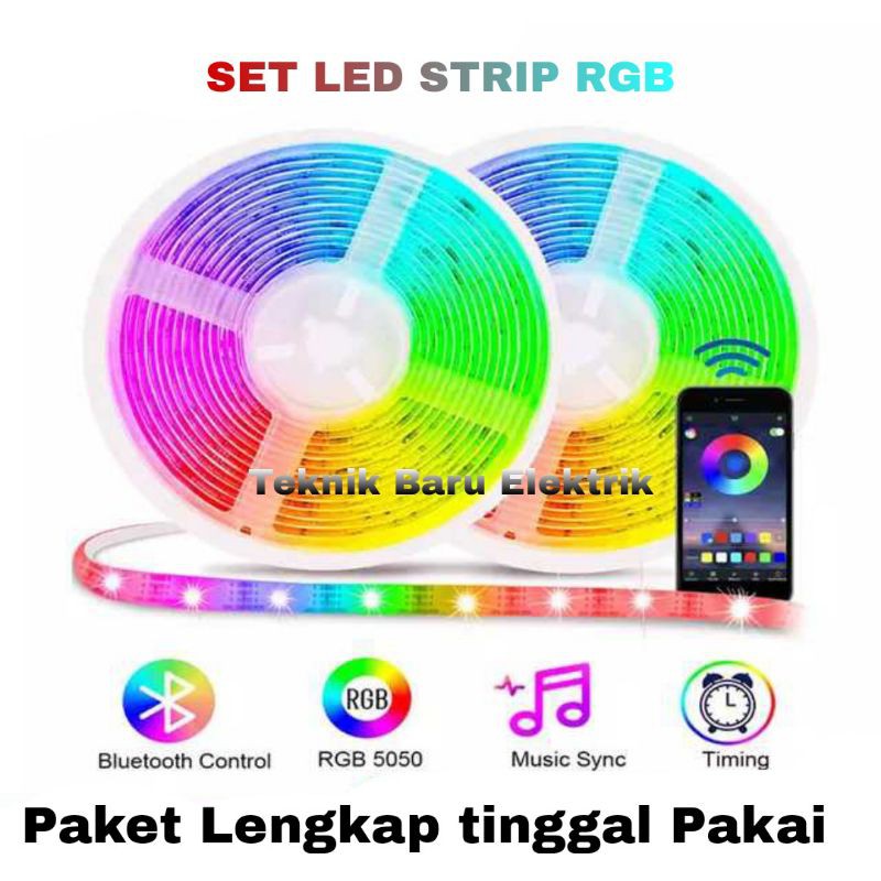 Paket Led Strip Rgb 2835 5050 Controller 24 44 Tombol Music Bluetooth Warna Warni Disco 3528 5m 10m Shopee Indonesia