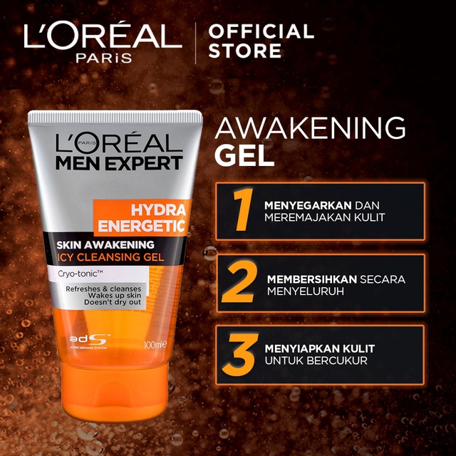 L Oreal Paris Men Expert Hydra Energetic Skin Awakening Icy Cleansing Gel Men S Skin Care 100 Ml Shopee Indonesia