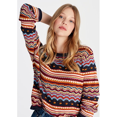 Kadin Mavi Uzun Kollu Renkli Kazak T38001898 Marks Spencer