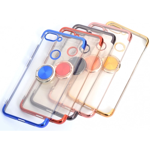 Xiaomi Mi 8 Lite Kilif Renkli Koseli Yuzuklu Standli Lazer Seffaf Esnek Silikon Gold Standli Kilif