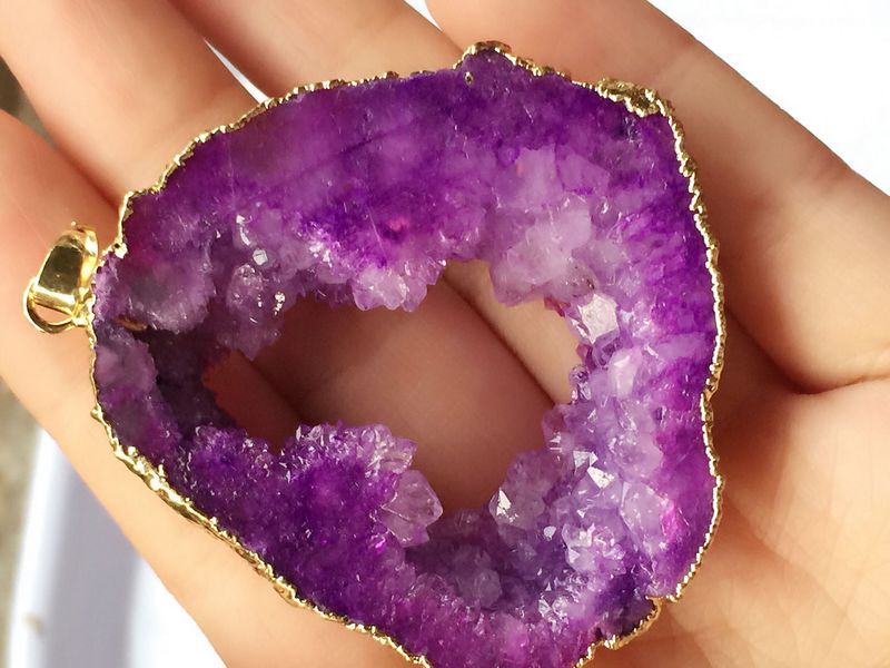 Satin Al Ucretsiz Kargo 6 Adet Altin Kaplama Koyu Mor Renk Doga Kuvars Druzy Geode Konektoru Drusy Kristal Gem Tas Kolye Boncuk Taki Bulgulari Tl146 83 Tr Dhgate Com