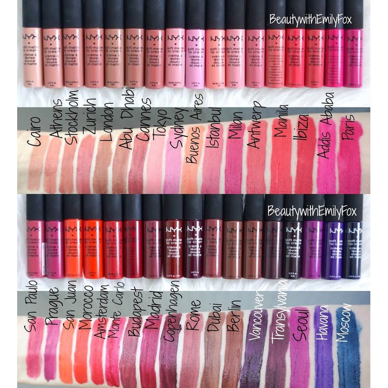 All 34 Shades Of The Nyx Soft Matte Lip Cream Swatches Cairo Athens Nyx Soft Matte Lip Cream Lip Cream Swatches Matte Lip Cream