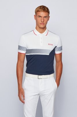 Boss Slim Fit Color Blocked Polo Shirt With Printed Stripes