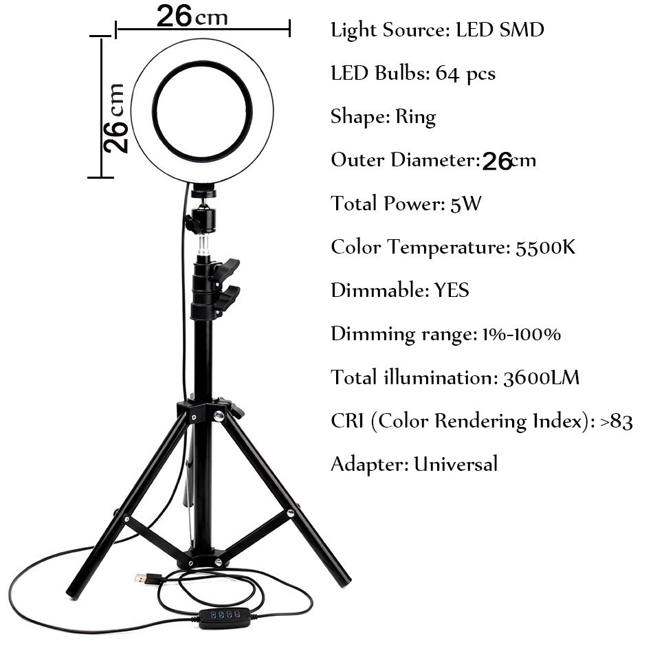 Tenwish 10 Ring Light Dimmable 5500k Lamp Photography Ring Kamera Lampu Led 3 Mode Lampu Tl Ring Shopee Indonesia
