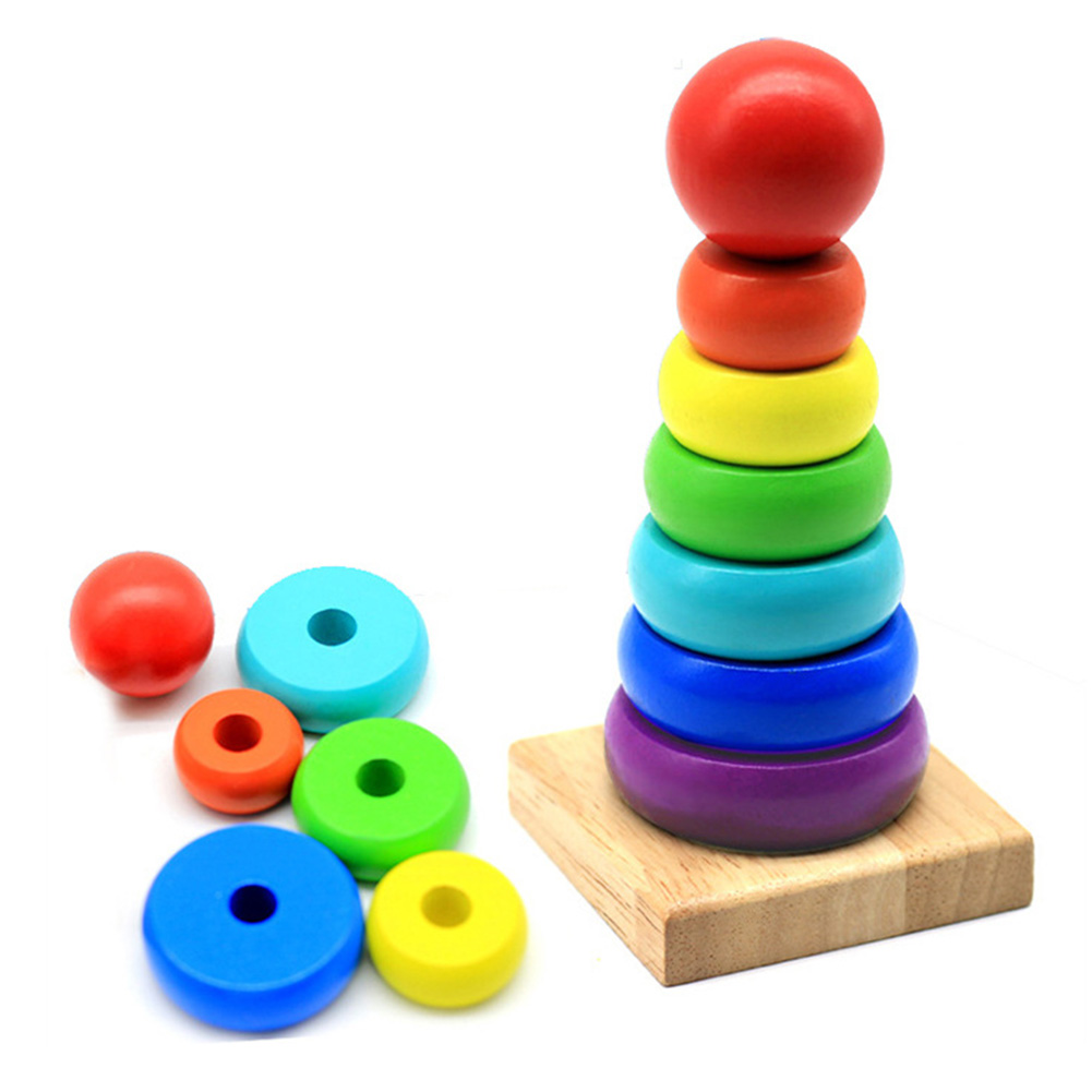 Gokkusagi Kule Bebek Ahsap Buyuk Gokkusagi Kulesi Egitici Oyuncak Renkli Halka Cocuk Istifleme Yuzuk Bebek Yigilmis Oyuncaklar Cocuklar Icin Renk Ve Sekil Aliexpress