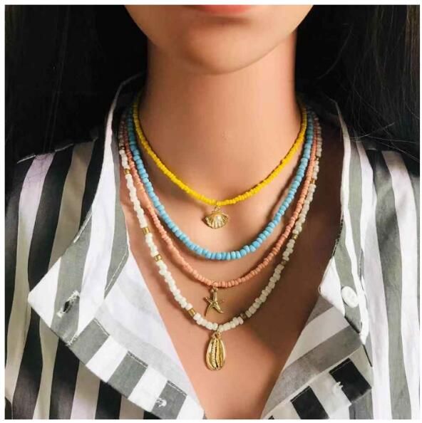 Satin Al Kadinlar Renkli Boncuk Shell Denizyildizi Kolye Salkim Cok Katmanli Boho Taki Aksesuar Moda Etnik Stil Chokers Salkim Seti Tl21 79 Tr Dhgate Com