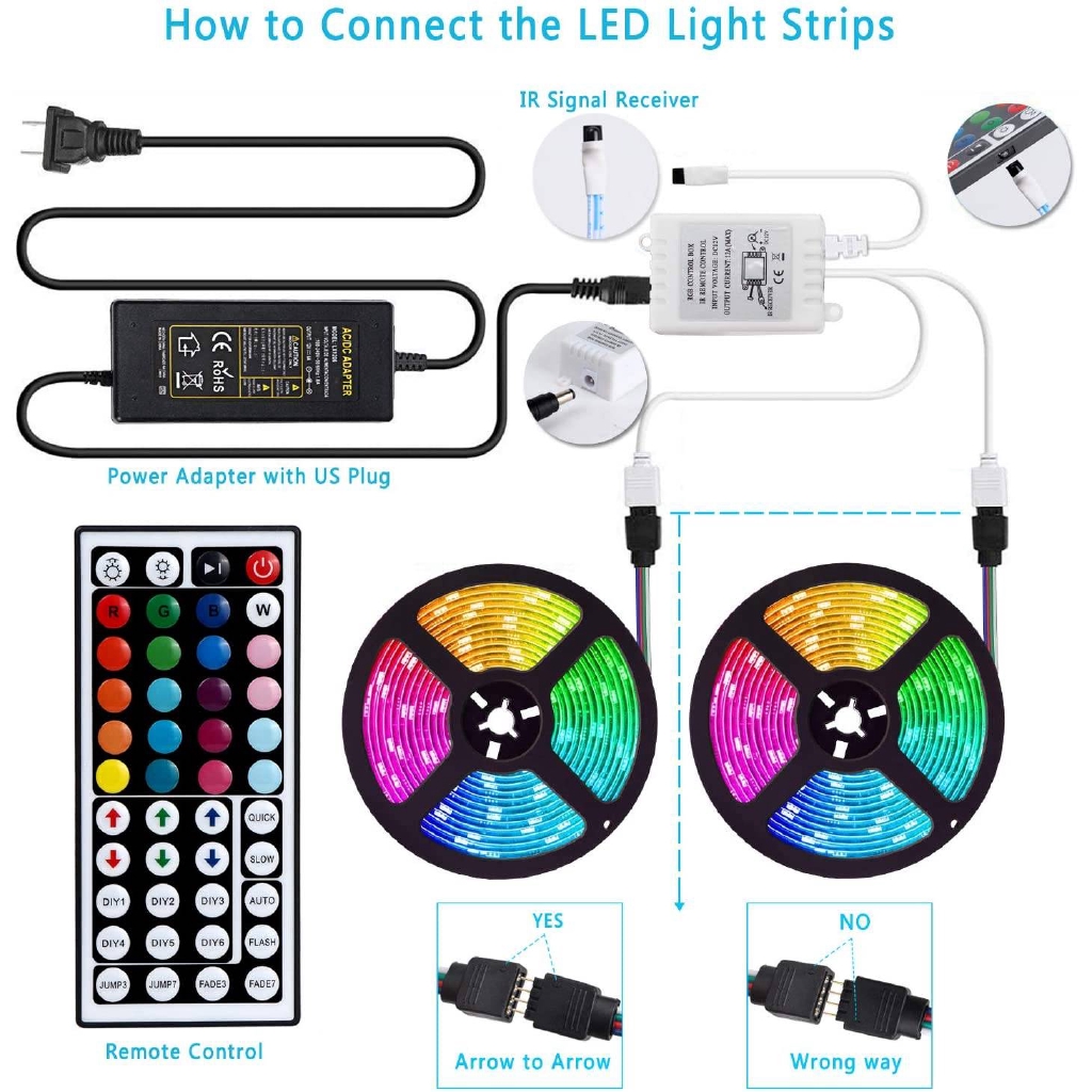 Led Strip Lampu 20m 600leds Rgb 5050 Mengubah Warna Dengan 44 Keys Ir Remote Ip65 Waterproof 12v Daya Dekorasi Untuk Natal Home Kitchen Tv Dekorasi 522 Shopee Indonesia