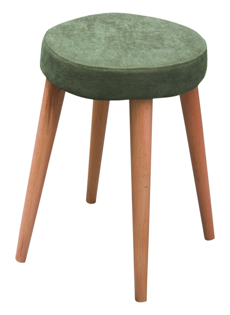 Seftali Rengi Keten Ahsap Ayakli Yuvarlak Tabure Puf