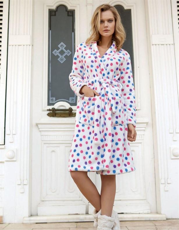 C City 054 Kadin Bride Nakisli Puanli Saten Sabahlik Cok Renkli
