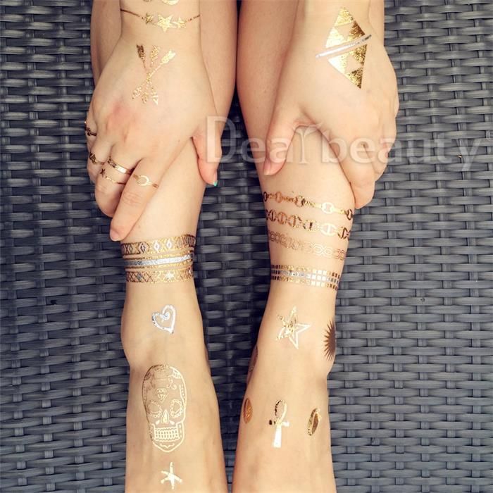 Satin Al Gecici Dovmeler Cikartmalar Metalik Bilezik Altin Gumus Sahte Flas Glitter Yapistirma Gecici Dovmeler Trendy Kadin Erkek Vucut Sanati Ucretsiz Dhl Tl4 8 Dhgate Comda