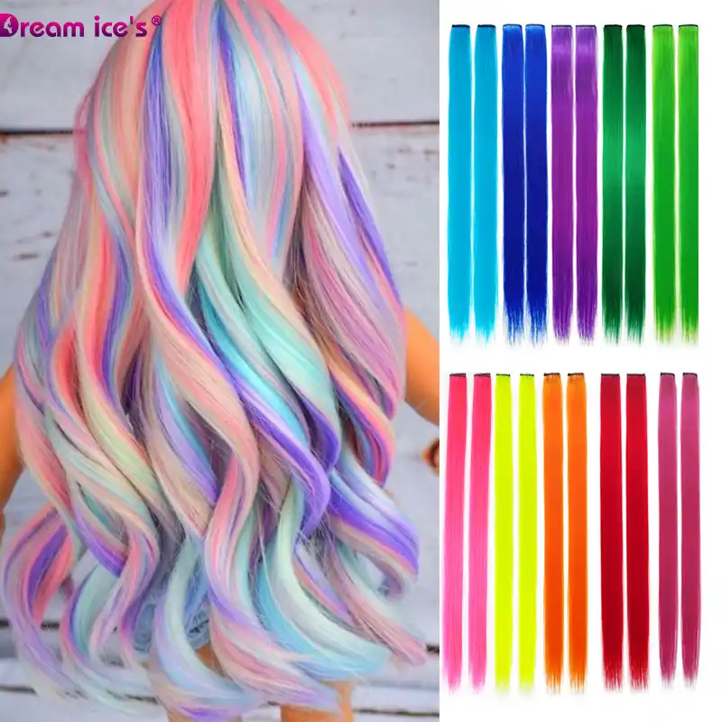 Feelsi Renkli Vurgulamak Sentetik Sac Uzantilari Klip Tek Parca Renkli Seritler 20 Uzun Duz Postis Spor Hayranlari Icin Sentetik Takilabilir Tek Parca Aliexpress