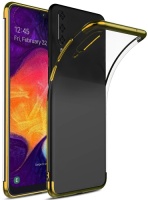 Samsung Galaxy A50 Kilif Renkli Koseli Lazer Seffaf Esnek Silikon Gold Silikon Kiliflar