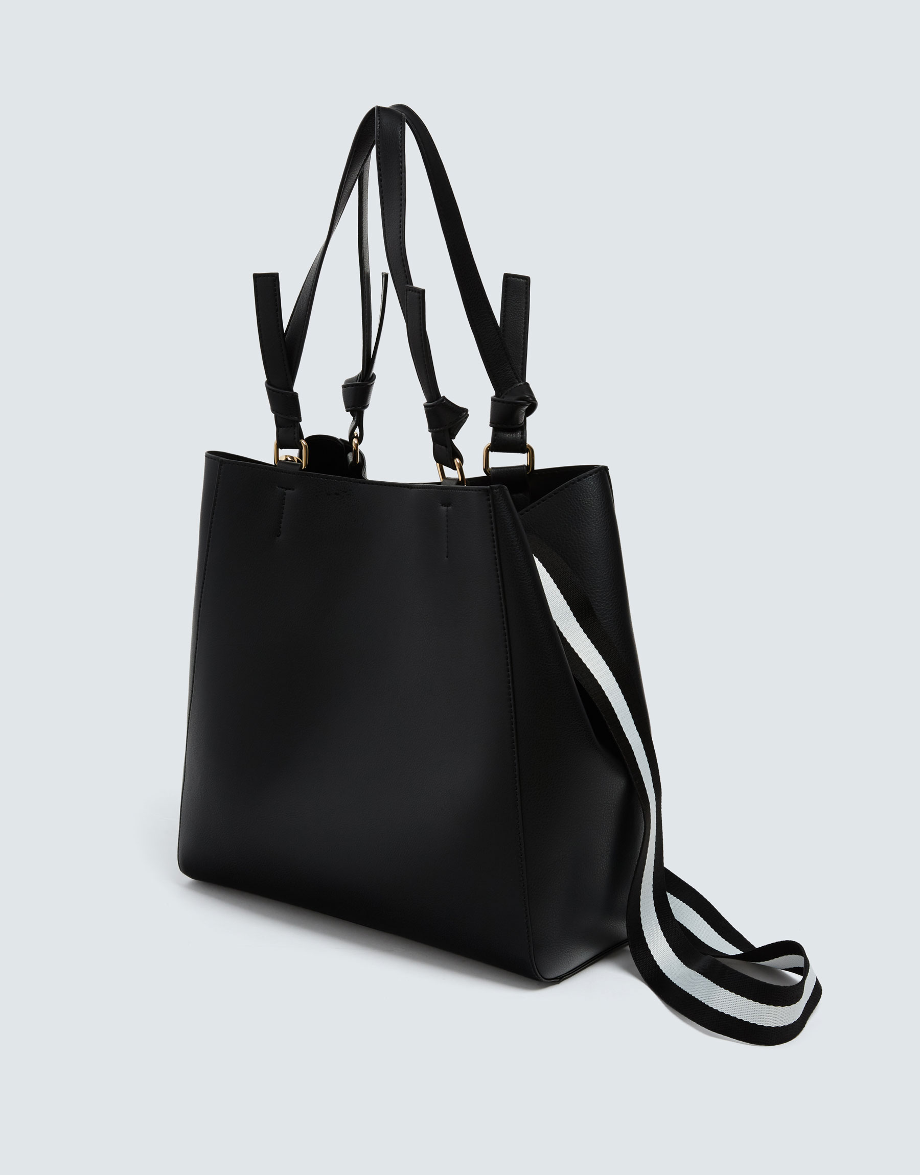 Modalite Net Pull Bear Iki Renkli Sapli Siyah Shopper Canta