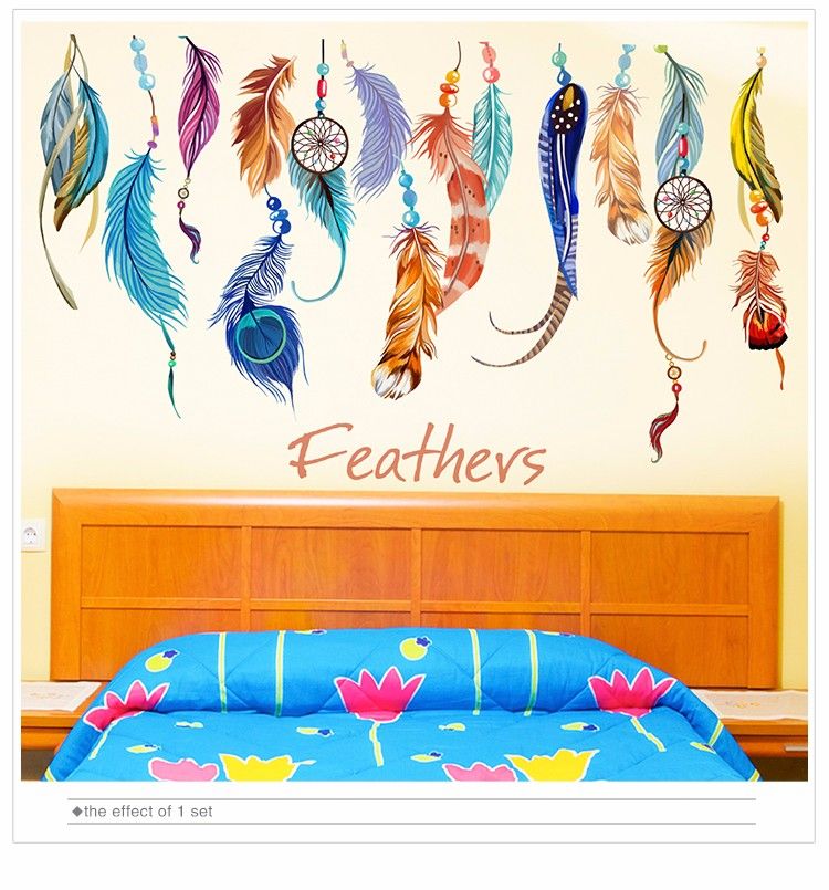 Satin Al Cikarilabilir Tuy Duvar Sticker Renkli Tuyleri Kore Dreamcatcher Duvar Cikartmalari Oturma Odasi Cocuk Odalari Dekorasyon Icin Tl28 13 Tr Dhgate Com