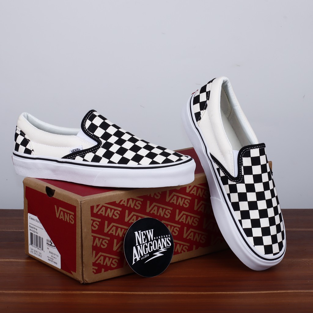 Sepatu Vans Slip On Motif Checkerboard Catur Classic Black White Hitam Putih Un Original Premium Shopee Indonesia