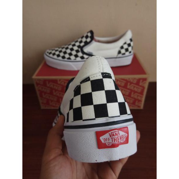 Sepatu Vans Slip On Motif Checker Board Catur Kotak Kotak White Black White Hitam Putih Original Shopee Indonesia