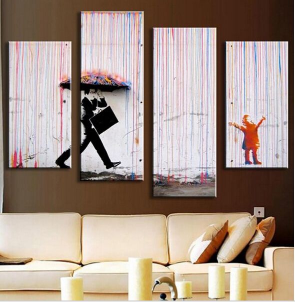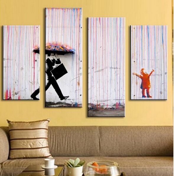 Satin Al Salon Duvar Rengi Soyut Yagliboya Icin 4 Fotograf Banksynin Sanat Renkli Yagmur Yagli Boya Tablolar Tl280 02 Tr Dhgate Com
